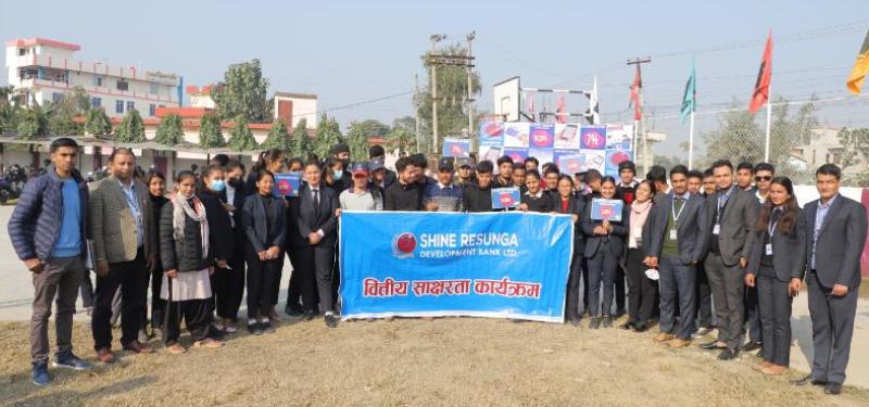 बैंकिङ खबर । शाइन रेशुङ्गा डेभलपमेण्ट बैंक लि. धनगढी शाखा कार्यालयले वित्तीय साक्षरता कार्यक्रम सम्पन्न गरेको छ । विद्यार्थीहरुलाई बैंकिङ सम्बन्धि जानकारी प्रदान गर्ने उदेश्यले कार्यक्रम आयोजना गरिएको हो ।