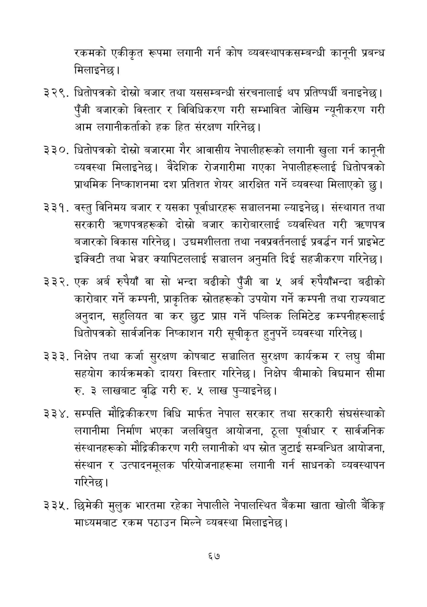 त्यस्तै, धितोपत्रको दोस्रो बजारमा गैर आवासीय नेपालीलाई लगानीका लागि कानुनी व्यवस्था गरिने भएको छ । यता भारतमा रहेका नेपालीले नेपालको बैंकमा खाता खोलेर बैंकमार्फत पैसा पठाउन मिल्ने व्यवस्था गरिने भएको छ ।