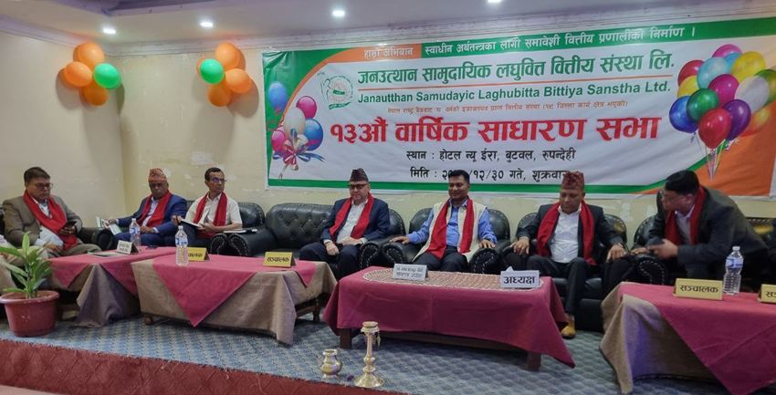 बैंकिङ खबर/ जनउत्थान सामुदायिक लघुवित्त वित्तीय संस्था लिमिटेडेको १३ औं वार्षिक साधारण सभा सम्पन्न भएको छ । सभा बुटवलको होटल न्यु ईरा रुपन्देहिमा सम्पन्न भएको हो ।