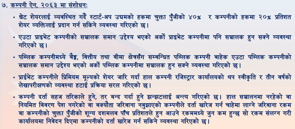 बैंकिङ खबर/ सरकारले शेयर बजारमा सुधार ल्याउनका लागि कम्पनी ऐन, २०५३ मा संशोधन गरेकाे छ ।