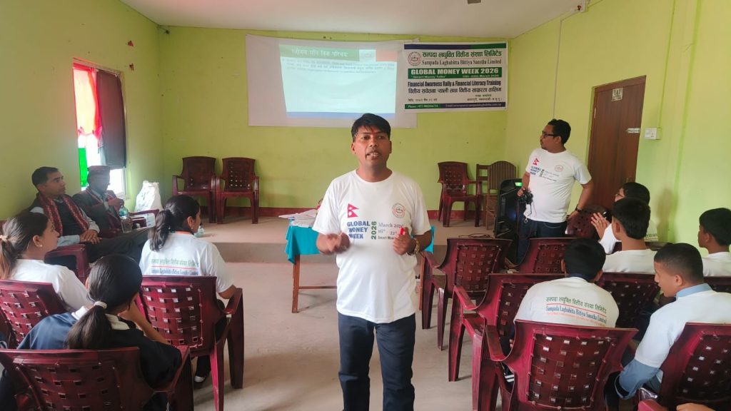 बैंकिङ खबर / विश्वव्यापी रुपमा मार्च १६ देखि २४ सम्म सञ्चालन हुदै आएको Global Money Week अन्तर्गत २०८२/१२/०२ मा सम्पदा लघुवित्त वित्तीय संस्थाको शाखा कार्यालय अमरापुरी नवलपरासीद्धारा गैंडाकोट–१५, नवलपरासी (ब.सु.पू) मा अवस्थित लक्ष्मी माध्यामिक विद्यालयको ९ कक्षामा अध्ययनरत ५० जना भन्दा बढी विद्यार्थीहरुको सहभागीता वित्तीय सचेतना तथा वित्तीय साक्षरता तालिम र शाखा कार्यालय बेलौरीले बेलौरी नगरपालिका वडा नं १० मा संस्थाको सदस्य, अभिभावक र वडाको प्रतिनिधीहरु गरि ४० जनाकोको सहभागितामा वित्तीय साक्षरता कार्यक्रम सम्पन्न गरेको छ।