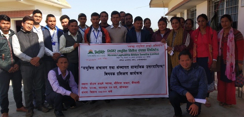 बैंकिङ खबर । मिर्मिरे लघुबित्त बित्तीय संस्थाल अत्तरीया क्षेत्रीय कार्यालयले कैलाली,जिल्लाको बौनियामा शाखा प्रबन्धक तथा फिल्ड सहायक कर्मचारीहरुलाई “लघुबित्त सञ्चालन तथा संस्थागत सामाजिक उत्तरदायित्व”विषयमा एक दिने प्रशिक्षण कार्यक्रम सम्पन्न गरेको छ ।