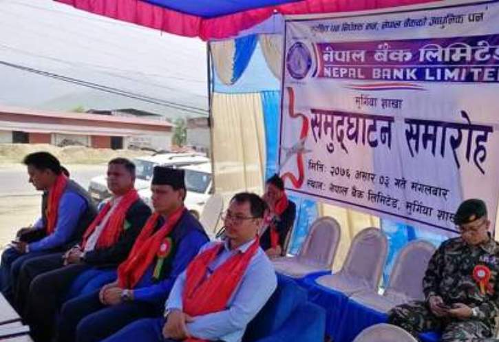 बैंकिङ खबर । नेपाल बैंक लिमिटेडले आफ्नो १ सय ६३ औं शाखा संचालनमा ल्याएको छ । बैंकले रुपन्देहीको सैनामैना नगरपालिकाको मुर्गियामा उक्त शाखा पुनस्थापित गरि संचालनमा ल्याएको हो ।