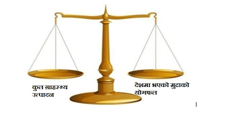कुल ग्रार्हस्थ उत्पादनभनेकोकुनैएकनिश्चितअवधिमामुलुकभित्र भएको वस्तु तथा सेवाको अन्तिम कारोबार मूल्यको योगफललाई जनाउँछ (कुल ग्रार्हस्थ उत्पादनको सूत्र = व्यक्तिगत खपत + व्यावसायिक लगानी + सरकारी खर्च + निर्यात – आयात ) ।कुल ग्रार्हस्थ उत्पादन एक प्रकारको मापदण्ड हो, जसले कुनै एक मुलुकको समग्र अर्थतन्त्रलाई प्रतिविम्बित गर्छ ।कुल ग्रार्हस्थ उत्पादन र देशमा भएको मुद्राको कुल योगफल बराबर हुनु पर्दछ ।अर्थब्यवस्थामा कुन बर्ष कतिप्रतिशतले मुद्राको आपुर्ती गर्नु पर्छ भन्ने त्यस अर्थब्यवस्थाको कुल ग्राहस्थ्य उत्पादनमा कतिप्रतिशत बृद्धिभयो र मुद्रस्फ्रितीमा कती प्रतिशतले बृद्धिभयो भन्नेमा भर पर्दछ। मानौ कुल ग्राहस्थ्य उत्पादनमा ५ प्रतिशतले बृद्धिभयो भने उत्पादित बस्तु तथा सेवा खरिद गर्नको लागि समेत ५ प्रतिशत ले मुद्रा को परिमाण बृद्धि गर्नु पर्छ किनभने बस्तु तथा सेवा उत्पदन गर्न बिभिन्न क्षेत्रको संलग्नता हुन्छ र संलग्न भए वापत मुद्रा दिनु पर्ने भएको हुनाले मुद्राको माग बढछ र सोहीअनुरुप मुद्राको छपाइमा बृद्धिआउँछ ।