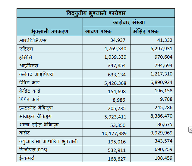 गभर्नर महाप्रसाद अधिकारीको कार्यकालमा २०७७ श्रावण देखि २०७७ मंसिरसम्म डिजिटल कारोबारमा आएको सुधार यस्तो छ ।