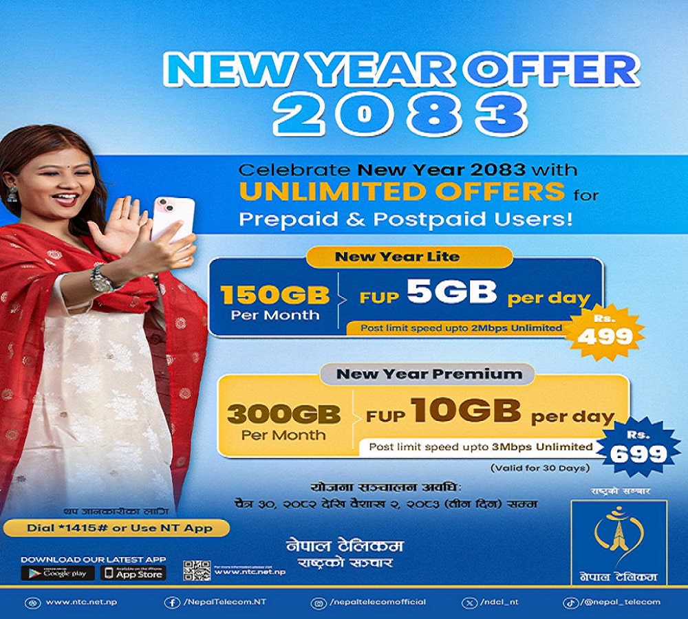 नेपाल टेलिकमले नयाँ वर्ष २०८३ अफर उपलब्ध गराउने भएको छ ।