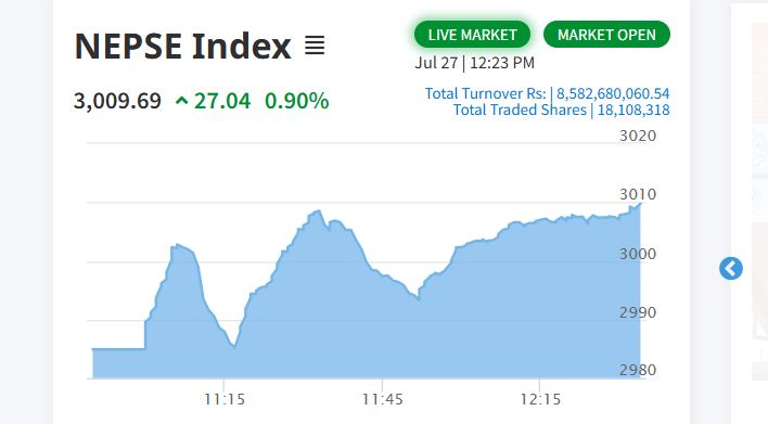 एक वर्षपछि नेप्से ३००० बिन्दु माथि उक्लियो